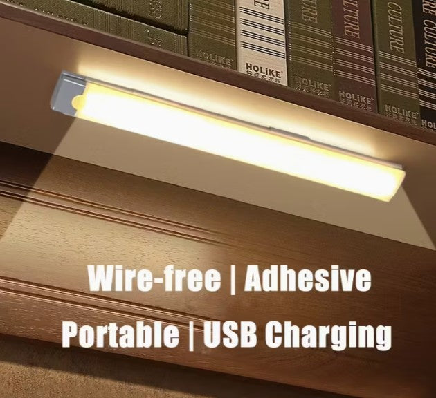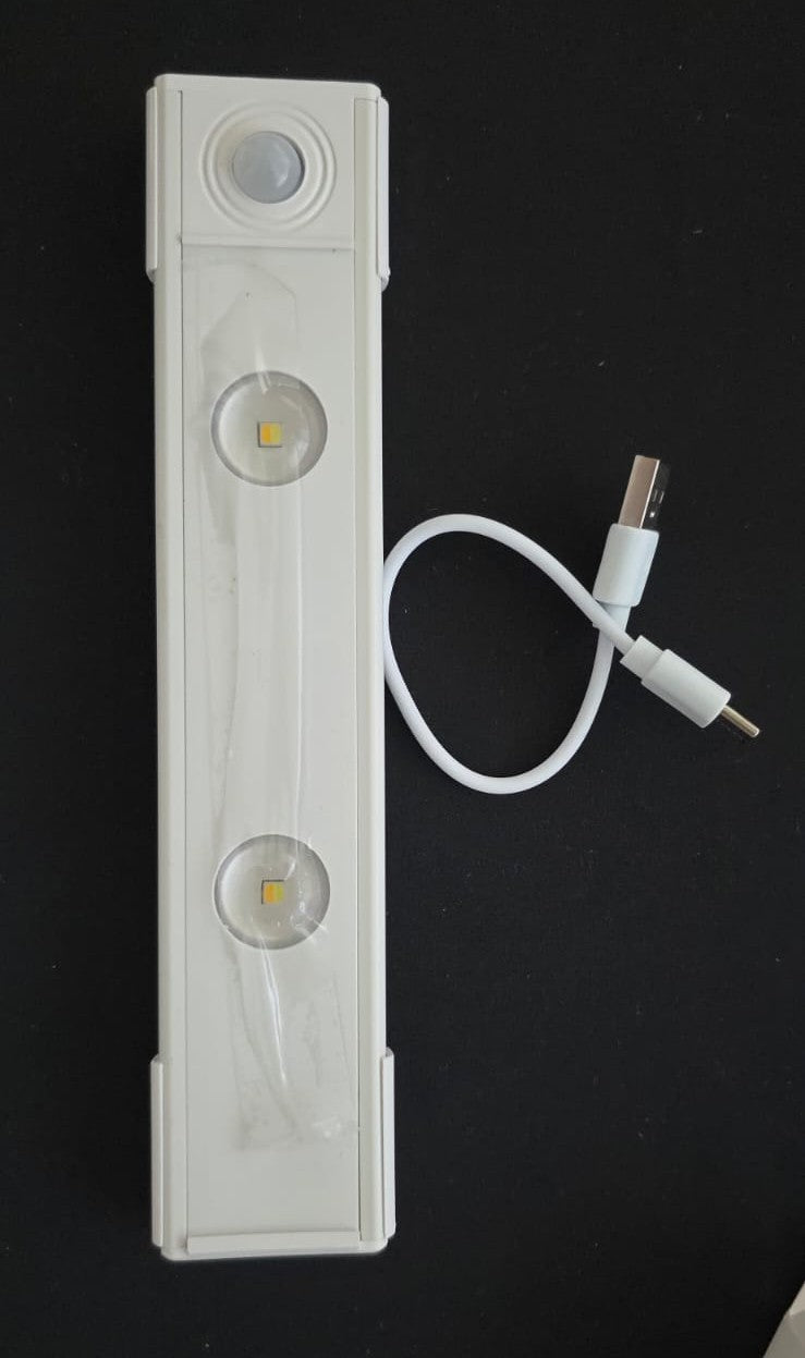 Barra de luz LED recargable con sensor de movimiento infrarrojo que se activa automáticamente al detectar presencia. Perfecta para iluminar gabinetes, armarios y cajones de cocina con precisión. Ofrece tres modos de iluminación: luz cálida para ambientes acogedores, luz fría para mayor claridad, e iluminación mixta adaptable. Recarga vía USB con cable incluido. Instalación sencilla mediante adhesivos de alta adherencia. Solución práctica y eficiente para espacios de almacenamiento que requieren visibilidad inmediata.